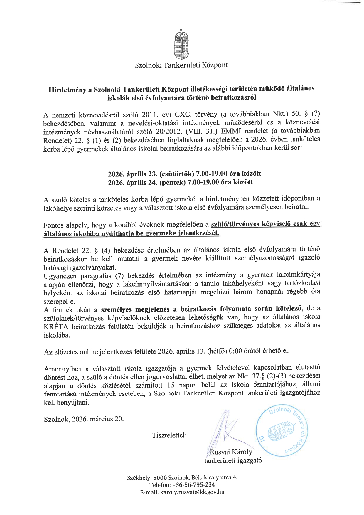 Az alábbi pdf tartalmazza az előzetes KRÉTA adabeküldési eljárásról szóló tájékoztatót szülőknek. FONTOS megjegyezni, hogy a beiratkozás napján személyesen kell a szülőknek megjelenni és a dokumentumokat benyújtani.